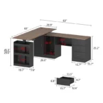 This executive desk combines functionality and style, making it a great addition to your home office. With an L-shaped design, it offers plenty of space for multitasking, while the adjustable height feature lets you switch from sitting to standing with ease. Made from solid and engineered wood, the brown desktop is supported by a black steel base, giving it a sleek, modern look. The five shelves, cabinet, and three drawers offer plenty of storage. Plus, cable management holes help keep your workspace tidy. The desk’s programmable memory controller allows you to customize your height preferences, making it a versatile choice for different users.(Attention: The storage cabinets on both sides are fixed and cannot be installed in interchangeable positions)