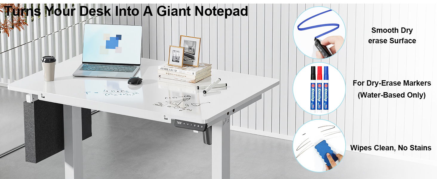 • SMART MEMORY PRESETS & CHILD LOCK – This standing desk programs 3 preferred heights for quick sit-to-stand adjustments. Child lock prevents accidental operation, perfect for families, classrooms, or shared spaces