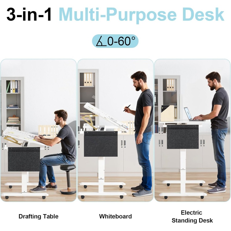 • TILTING WHITEBOARD SURFACE – 35.4″×23.6″ dry-erase tabletop tilts 0–60° for drawing, drafting, or note-taking. Wipes clean easily (water-based markers only). Stopper keeps books, tablets, or papers secure—ideal for art, schoolwork, or professional use